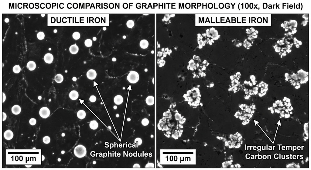 Malleable iron’s irregular graphite clusters don’t perform quite as well. They still provide decent ductility, way better than gray iron’s graphite flakes. But they can’t match the stress distribution of perfectly spherical nodules.
