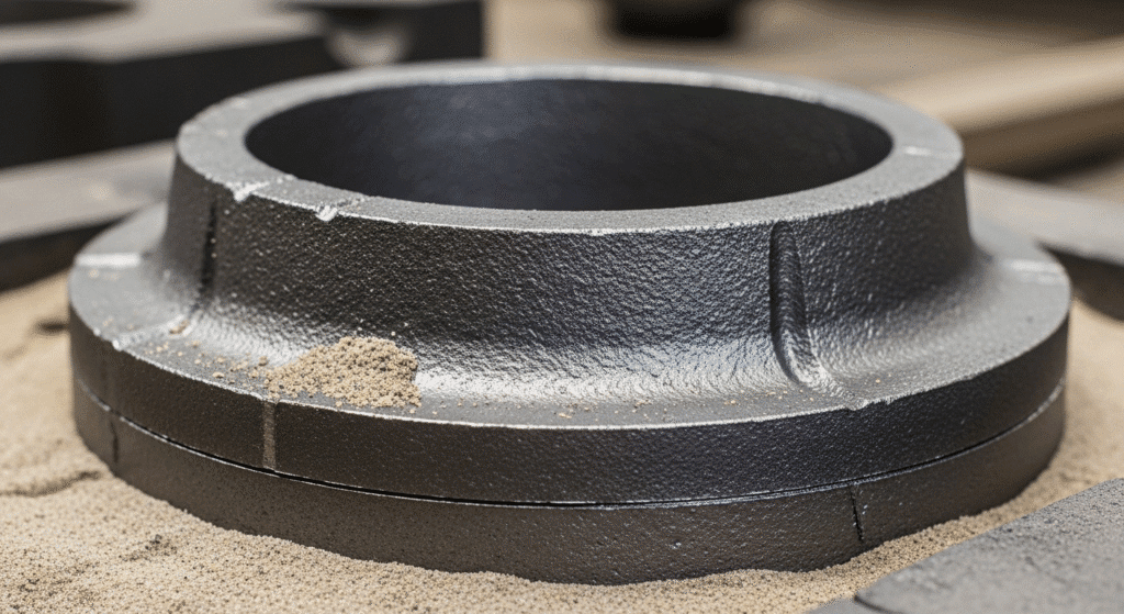 What makes GGG-50 special is its microstructure. Unlike gray cast iron with flake graphite, GGG-50 contains graphite in spherical nodules. This spheroidal graphite, combined with a ferritic-pearlitic matrix, gives the material steel-like mechanical properties while maintaining excellent castability and vibration damping characteristics typical of cast iron.